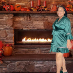 🌹 Design Essence: With an elegant ruffle hem, 3/4 sleeves, a refined V-neck with mesh inserts, a waist-accentuating belt, and handy side pockets, this robe is the epitome of timeless charm.