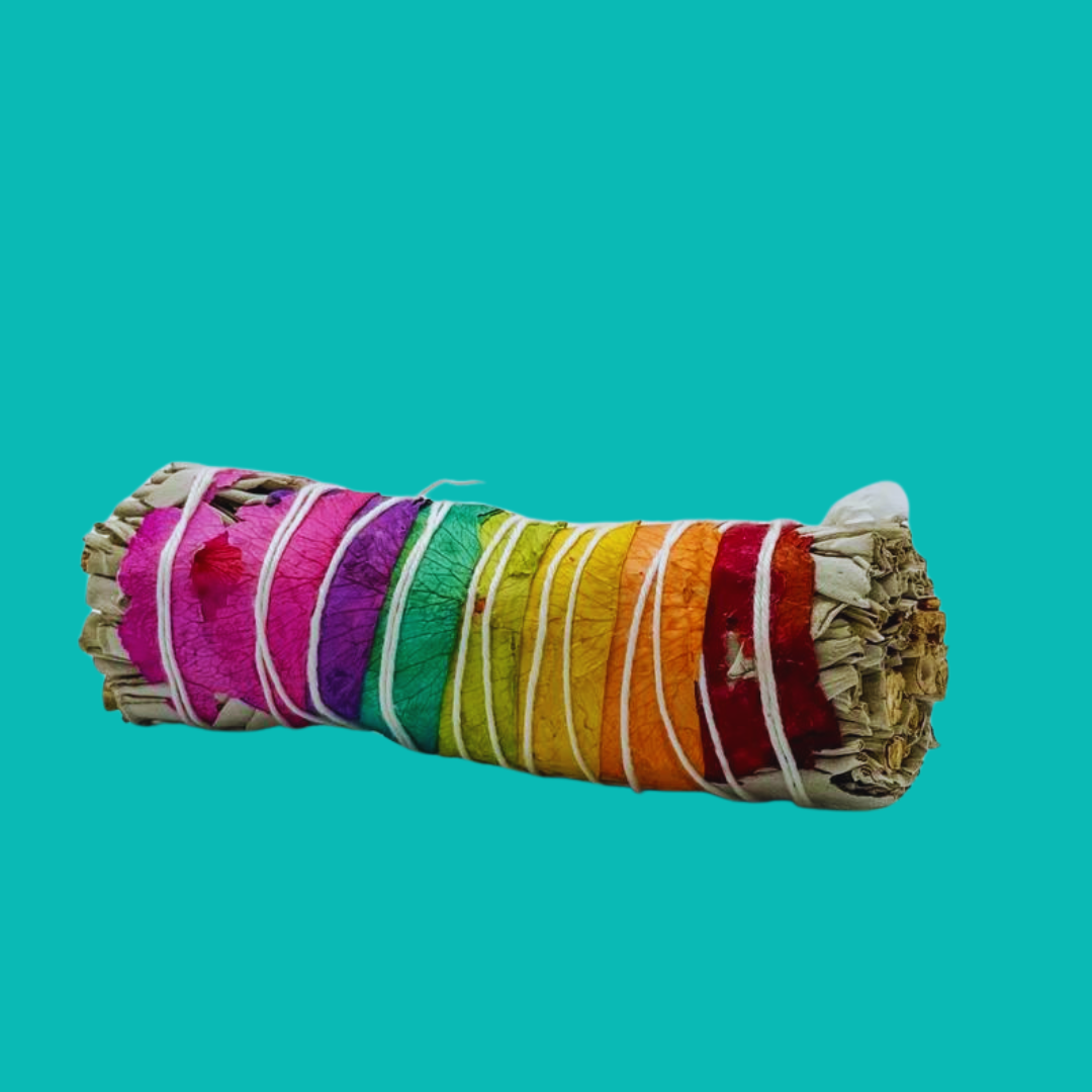 Celestial Chakra Rose Sage - 4" White Sage Smudge Stick with 7 Color Rose Petals